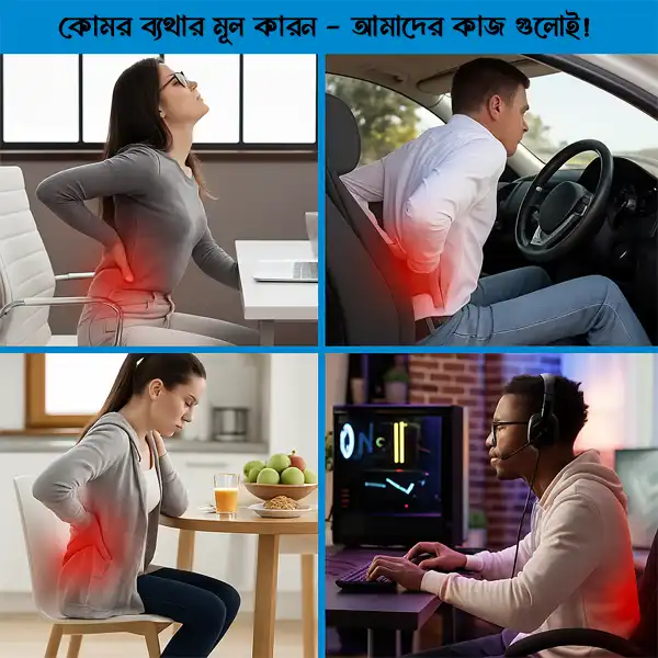 Lumbar Back Support Pillow – অফিস ও গেমিং চেয়ারের জন্য পারফেক্ট। সঠিক ভঙ্গিতে বসতে সাহায্য করে, পিঠের ব্যথা ও স্ট্রেইন থেকে মুক্তি দেয়। যারা দীর্ঘক্ষণ বসে কাজ করেন, তারা চেয়ারের সাথে ব্যবহার করলে আরাম পাবেন।