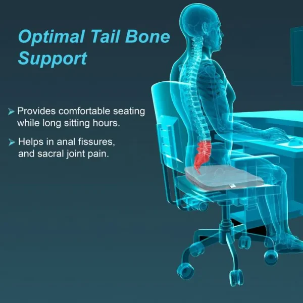 Tynor Coccyx Cushion provides orthopedic support and comfort for tailbone pain, sciatica, and lower back discomfort. Ideal for office, home, and car use. Improve your sitting posture with this ergonomic solution.